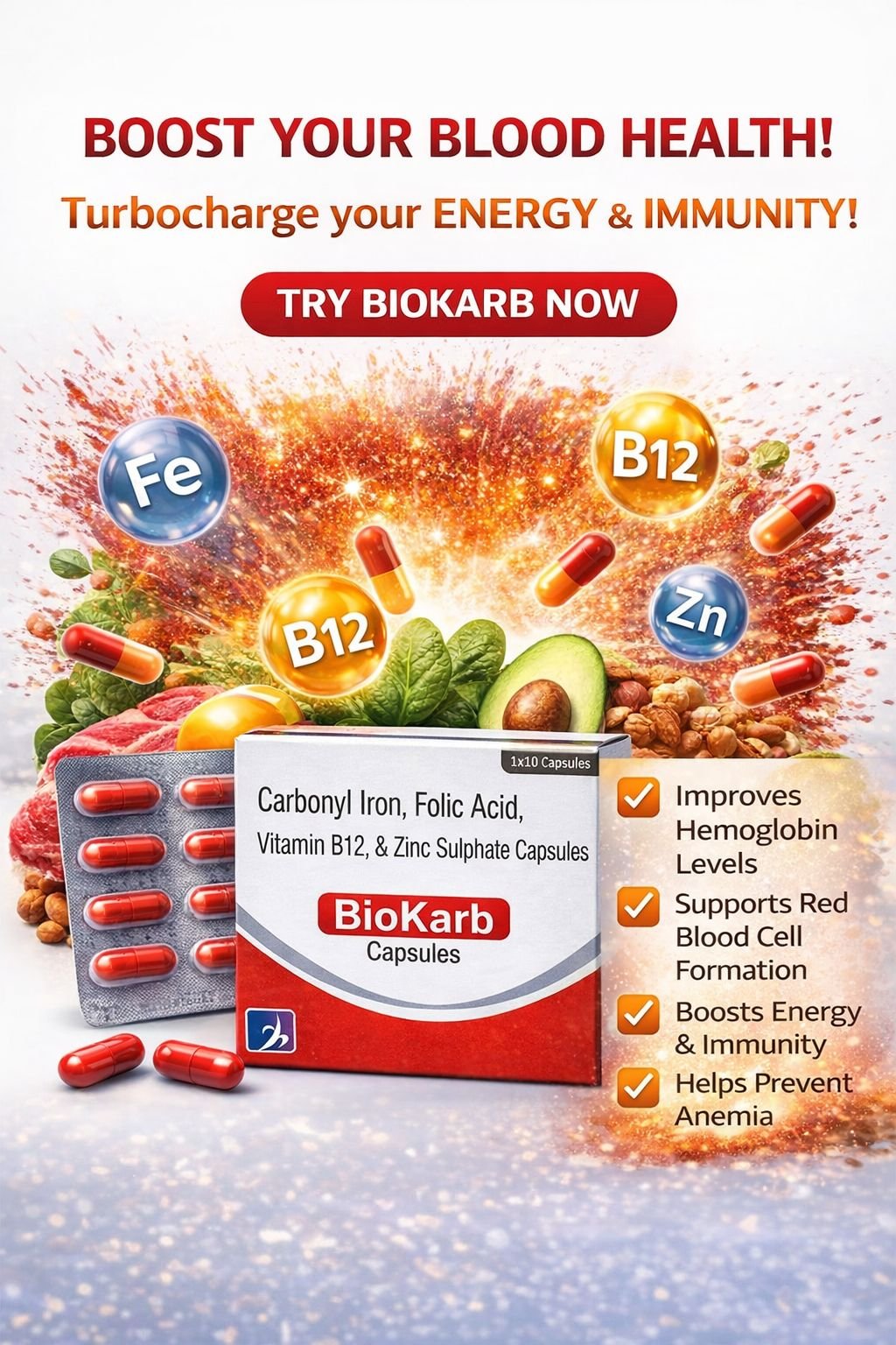 So the main purpose of Biokarb is to help improve blood hemoglobin levels when the body lacks enough iron (and possibly folate) — which can cause symptoms like fatigue, weakness, pallor, etc.