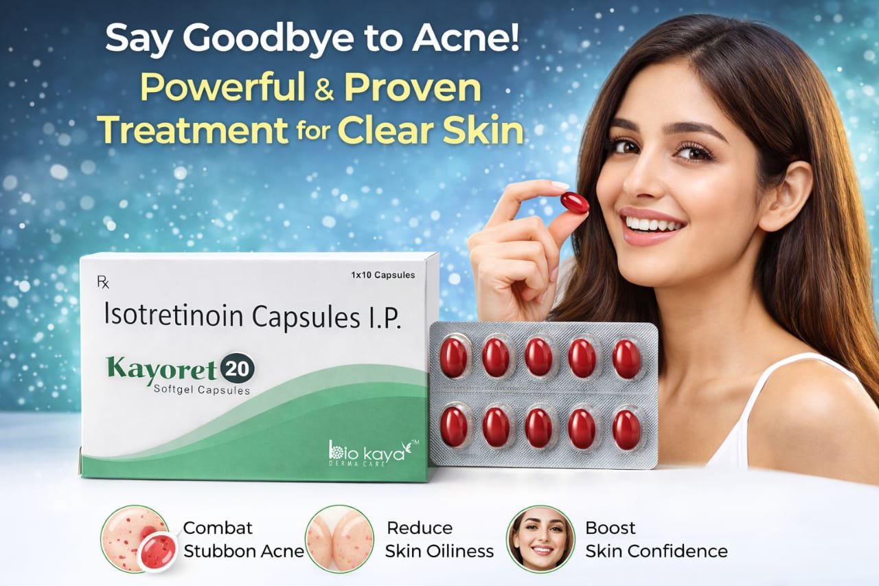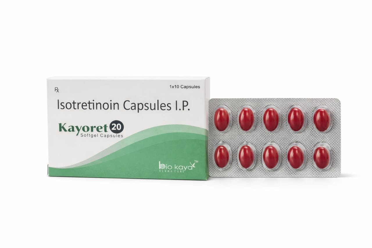 The Kayoret 20 softgel capsule is a medicine containing the active ingredient isotretinoin (20 mg), which is a derivative of vitamin A. It is primarily used to treat severe, disfiguring nodular acne that has not responded to other treatments, including antibiotics.